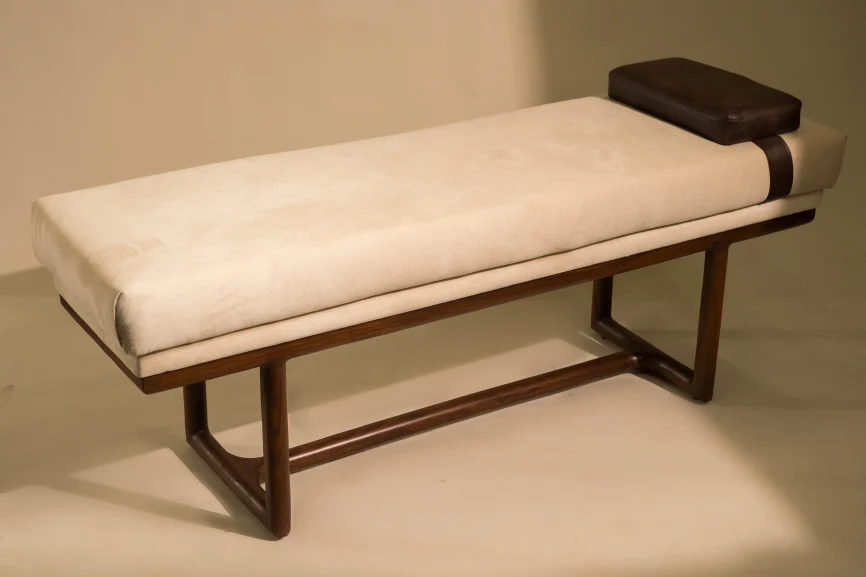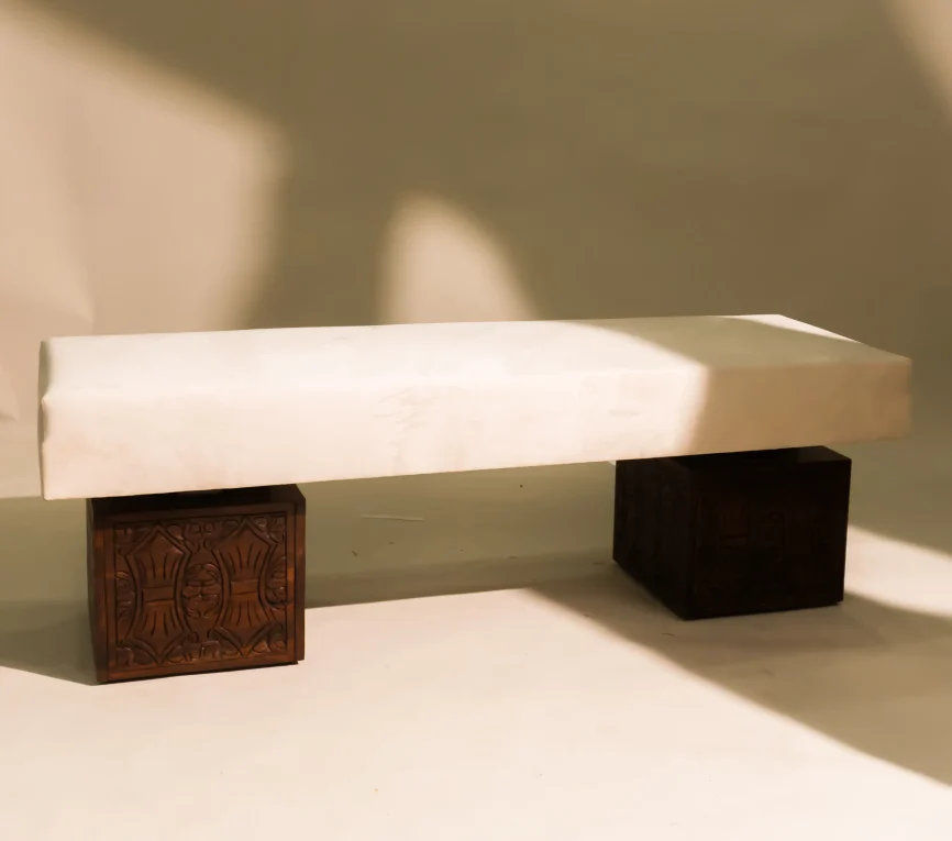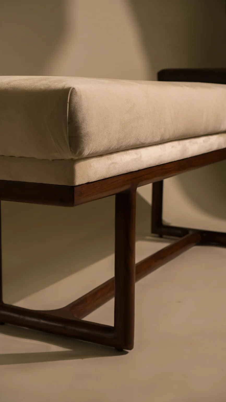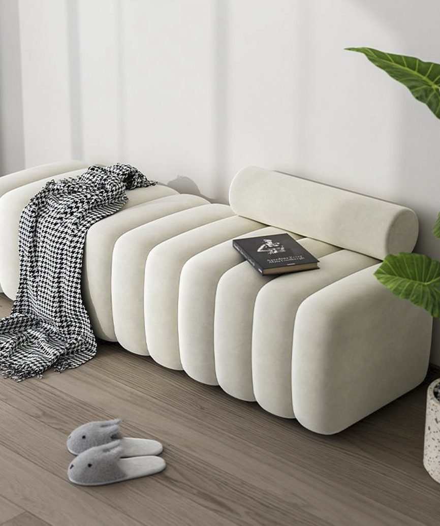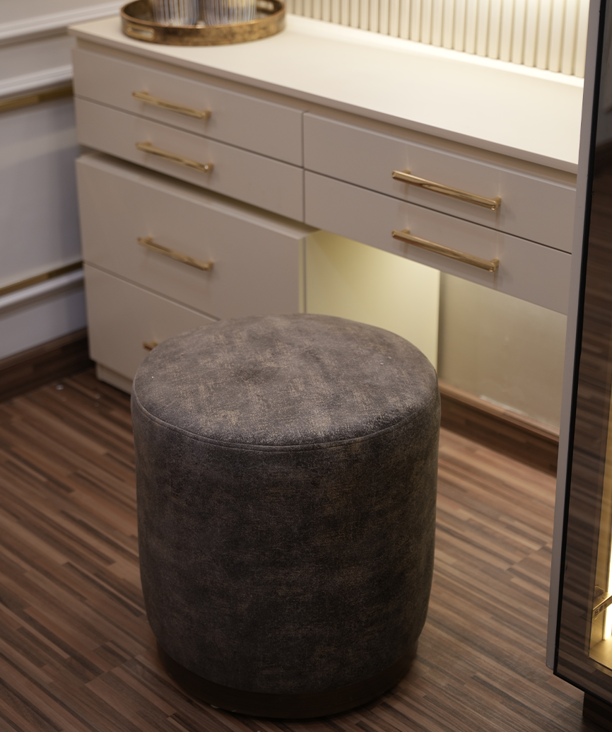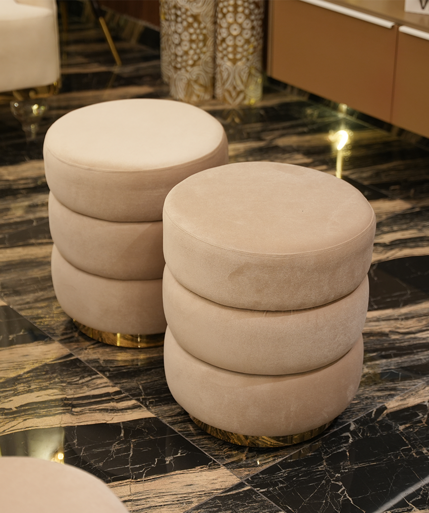 The Rustic Ottoman features a durable China Kail wood and MDF structure, upholstered in premium Turkish fabric for elegance and comfort. Its stainless steel framing adds a sleek, modern touch, making it perfect, seating, or accent piece for any interior.